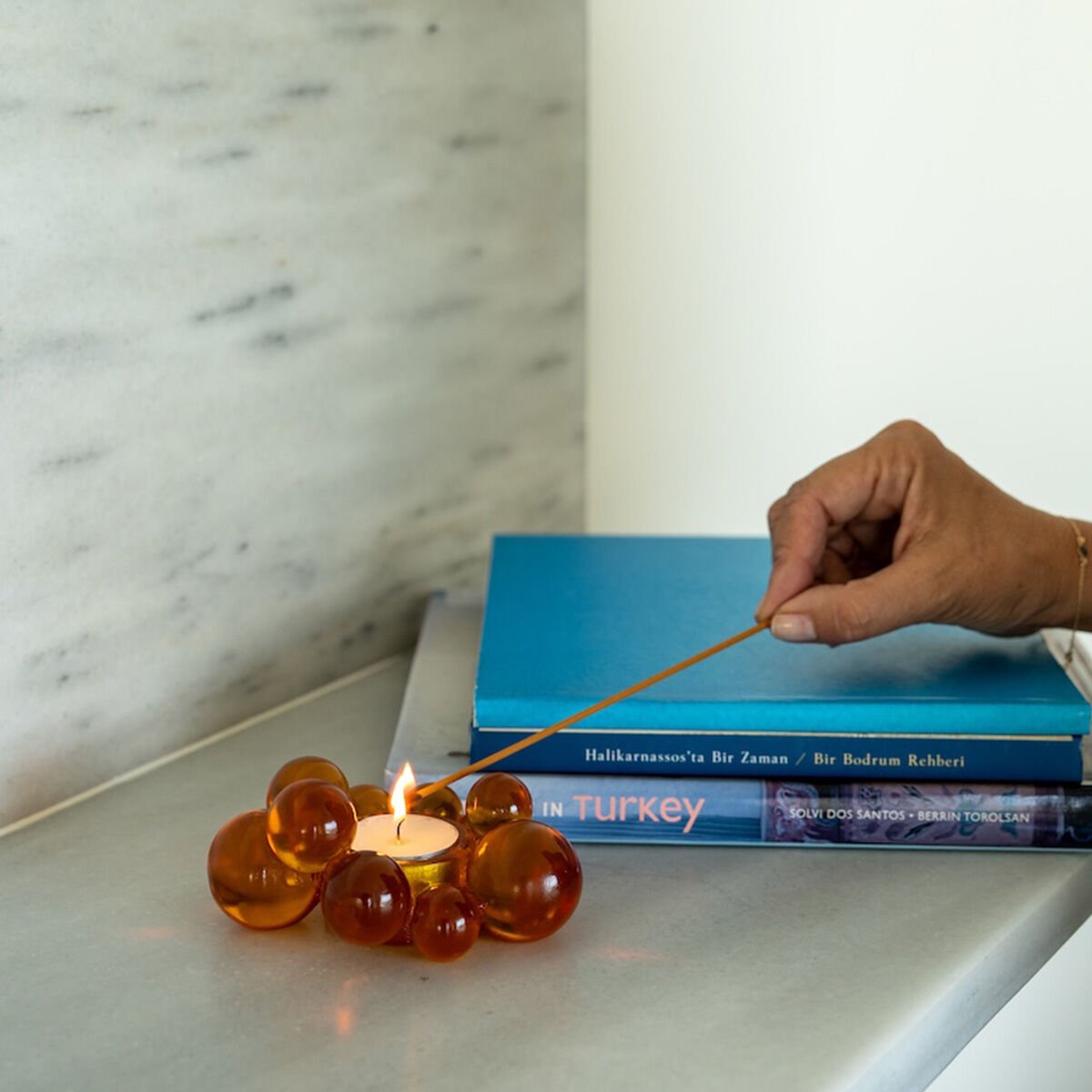 Amber tonlarındaki reçineden tasarlanan bu mumluk, evinizde sıcak ve davetkâr bir atmosfer yaratmak için özenle hazırlanmıştır.