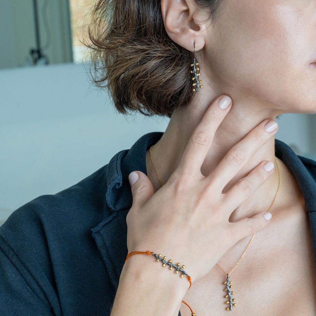Antheia küpe gümüş üzeri altın kaplama olarak üretilmiştir.