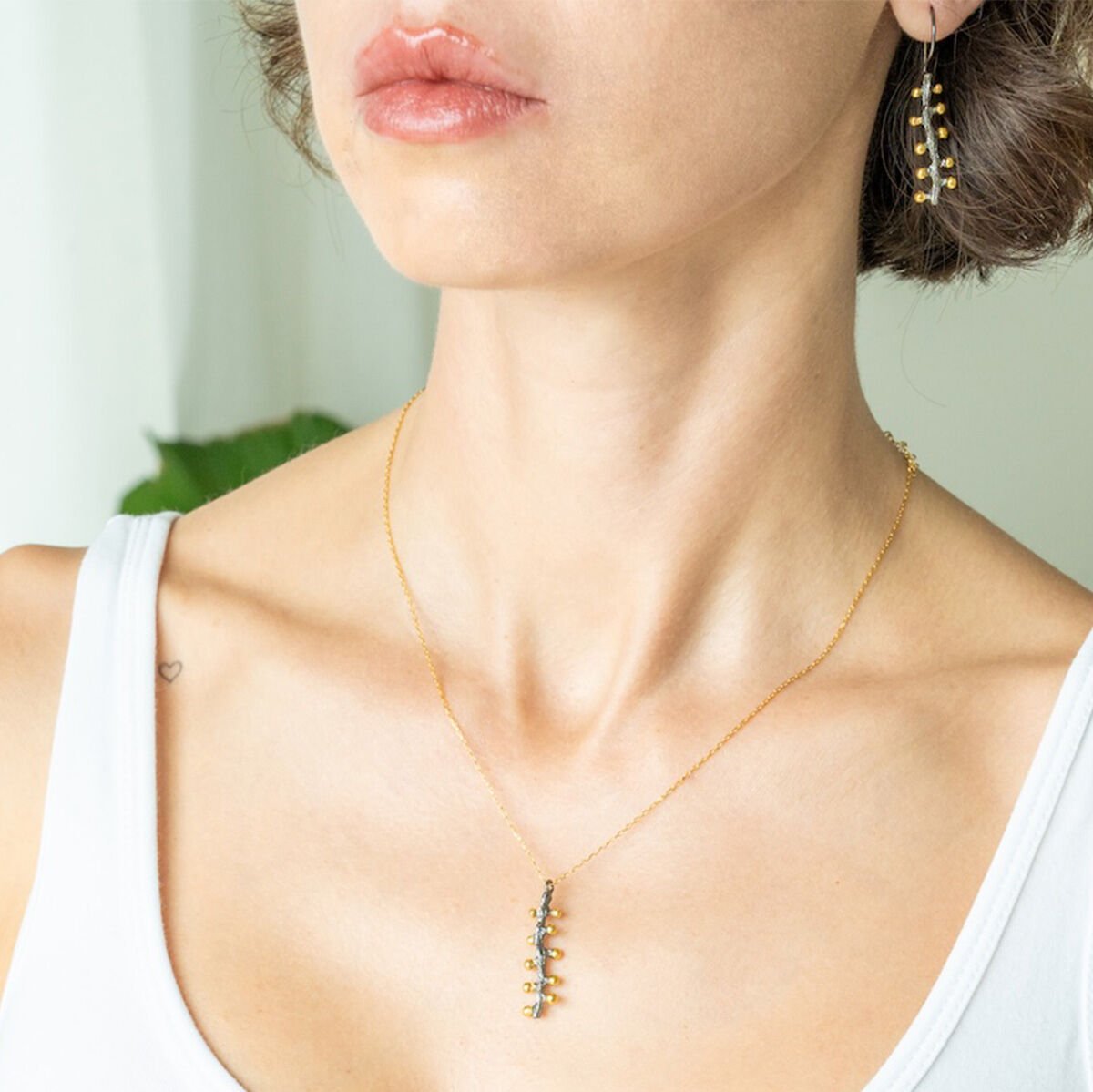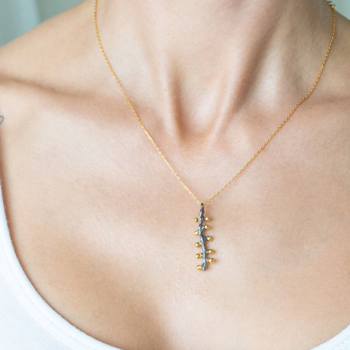 Antheia kolye gümüş üzeri altın kaplama olarak üretilmiştir.