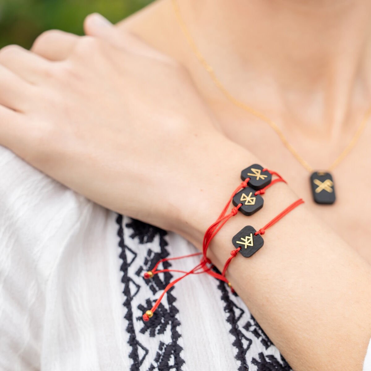 This LOVE symbol bracelet, inspired by the Viking spirit and crafted from ebony wood with 925 sterling silver gold plating, offers both elegance and significance.