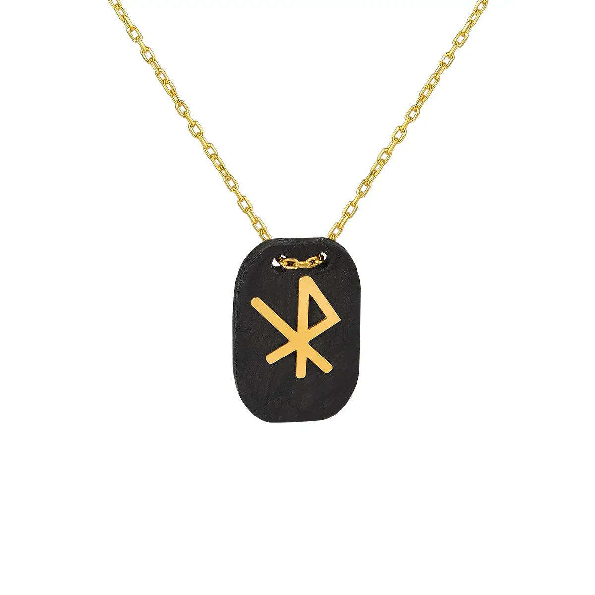 Inspired by the protective and luck-bringing meanings of Viking symbols from ancient Norse culture, this necklace is meticulously crafted with Ebony stone and 925 sterling silver plated with gold.