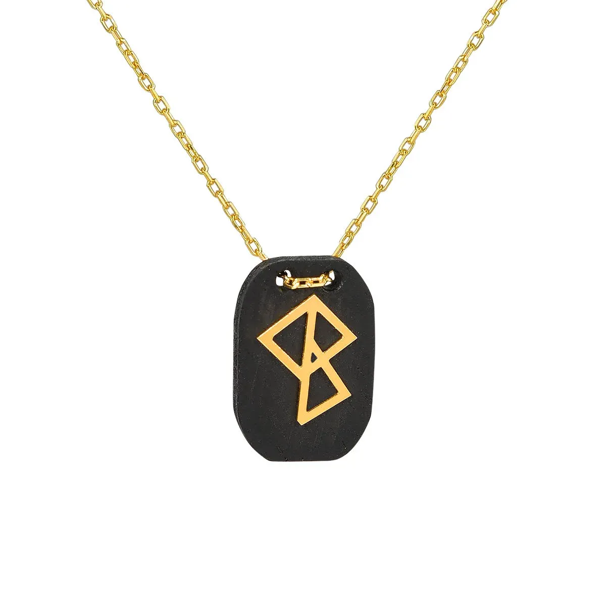 Inspired by the protective and luck-bringing meanings of Viking symbols from ancient Norse culture, this necklace is meticulously crafted with Ebony stone and 925 sterling silver plated with gold.