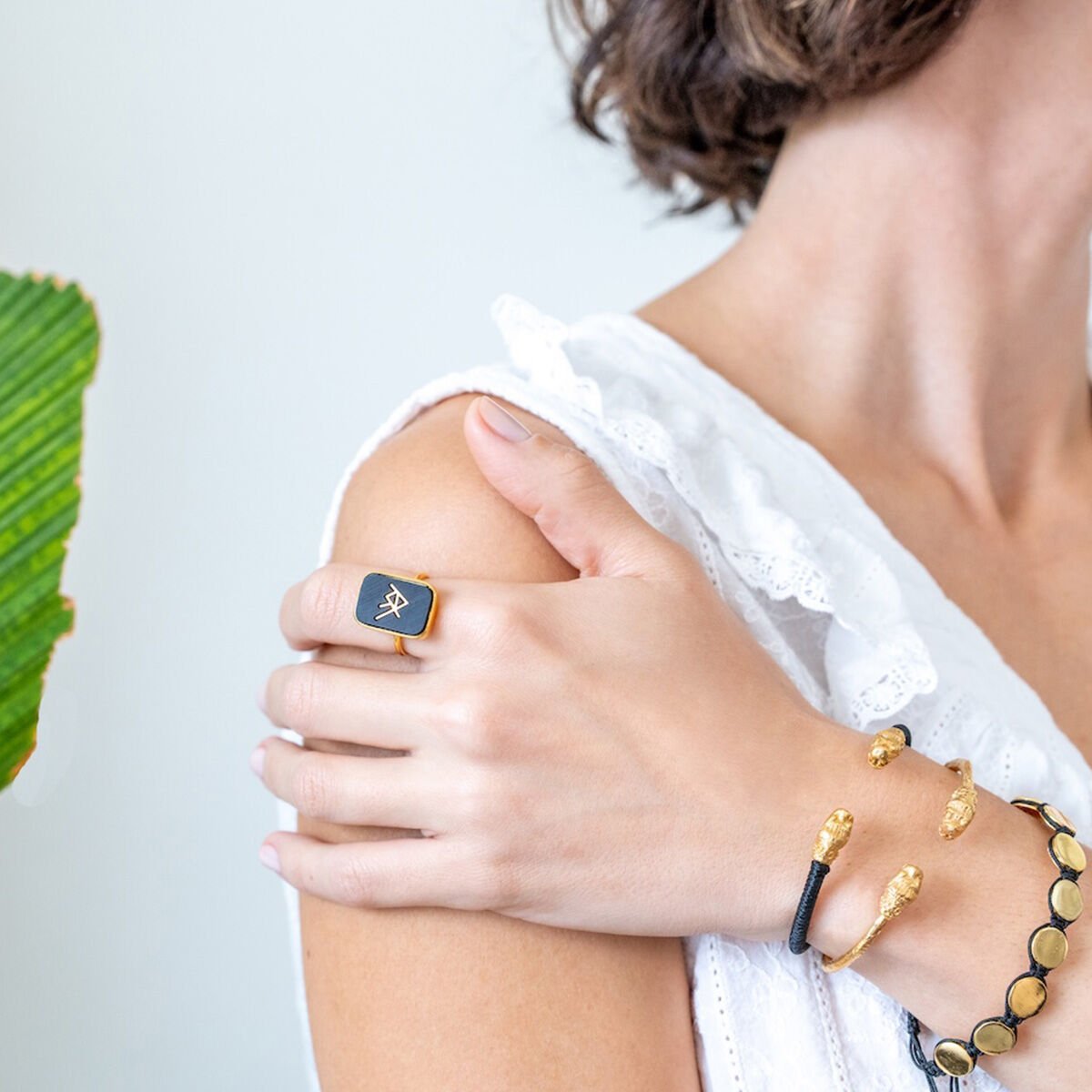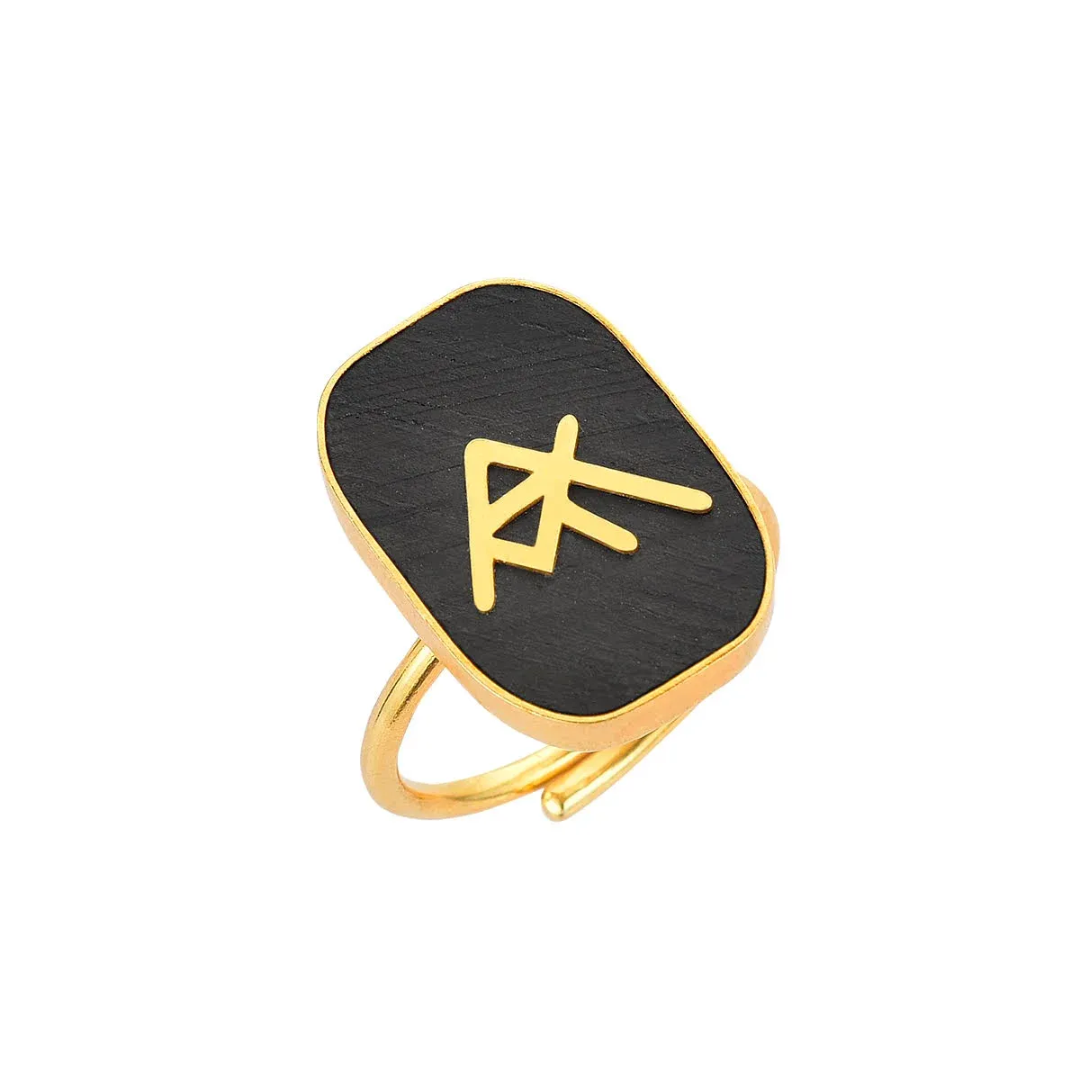 Inspired by the protective and Health-bringing meanings of Viking symbols from ancient Norse culture, this ring is meticulously crafted with Ebony stone and 925 sterling silver plated with gold.