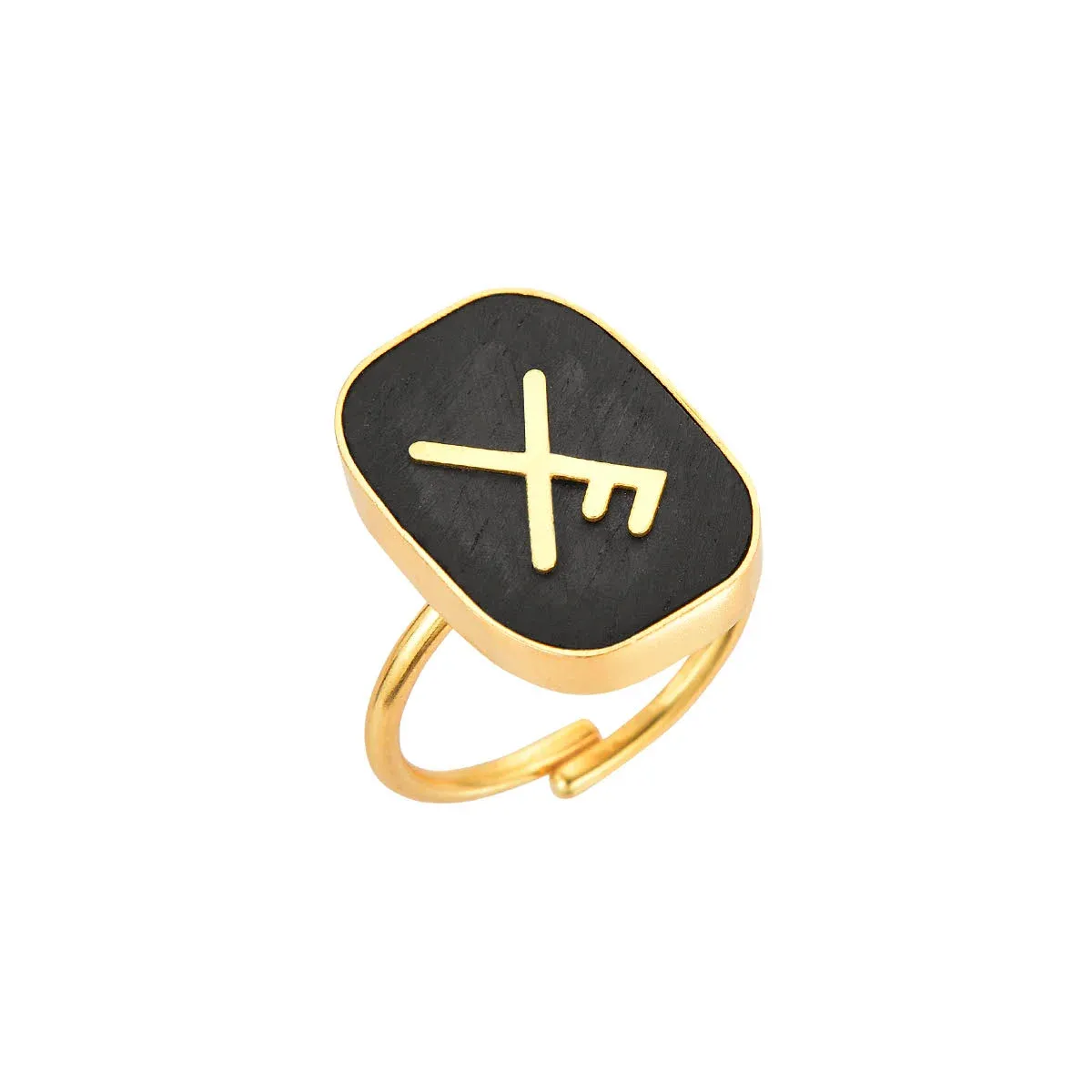 Inspired by the protective and luck-bringing meanings of Viking symbols from ancient Norse culture, this ring is meticulously crafted with Ebony stone and 925 sterling silver plated with gold.