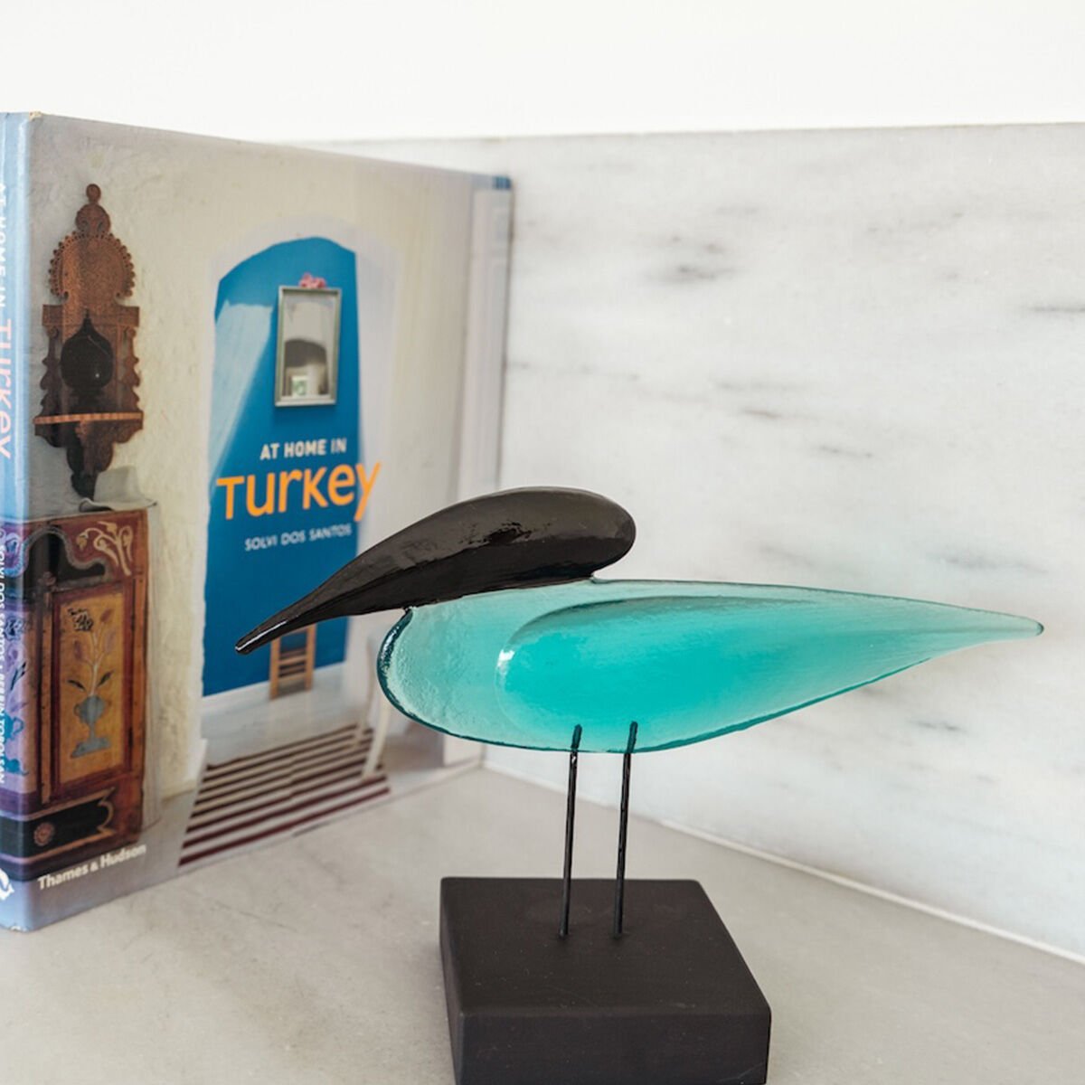 Turkuaz rengin huzur veren tonlarından ilham alınarak tasarlanan bu dekoratif Kuş figürü, zarafet ve özgürlüğün simgesidir.