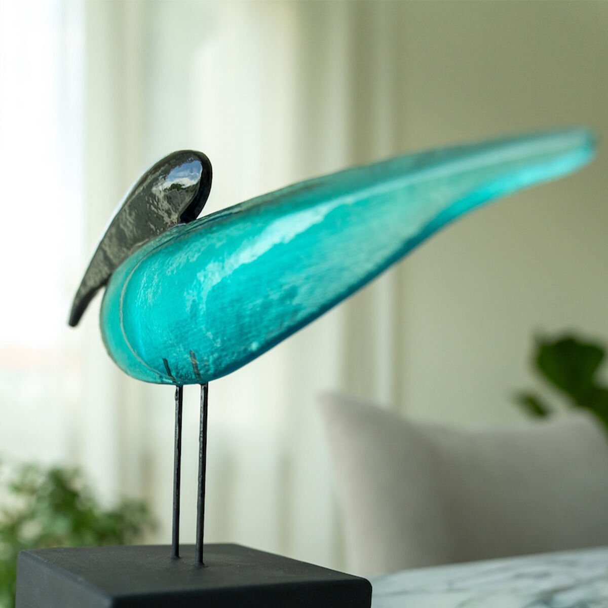 Inspired by the serene shades of turquoise, this decorative Bird sculpture embodies grace and freedom.