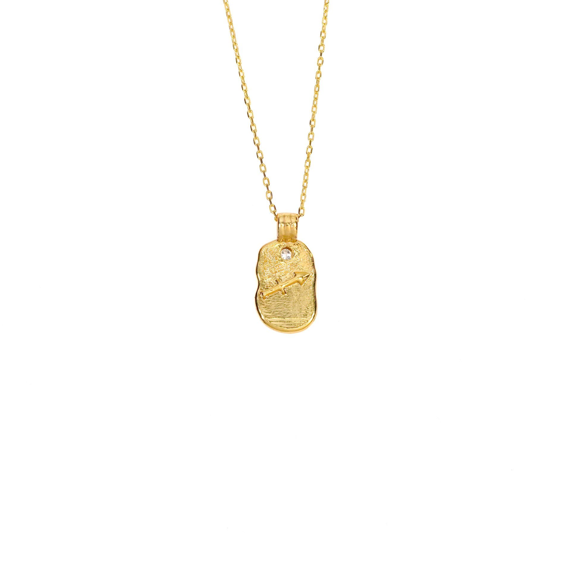 Enerjik, özgür ruhlu, maceraperest Yay burçları için tasarlanan kolye 925 ayar gümüş üzeri altınkaplama ve bronz malzemeden üretilmiştir.